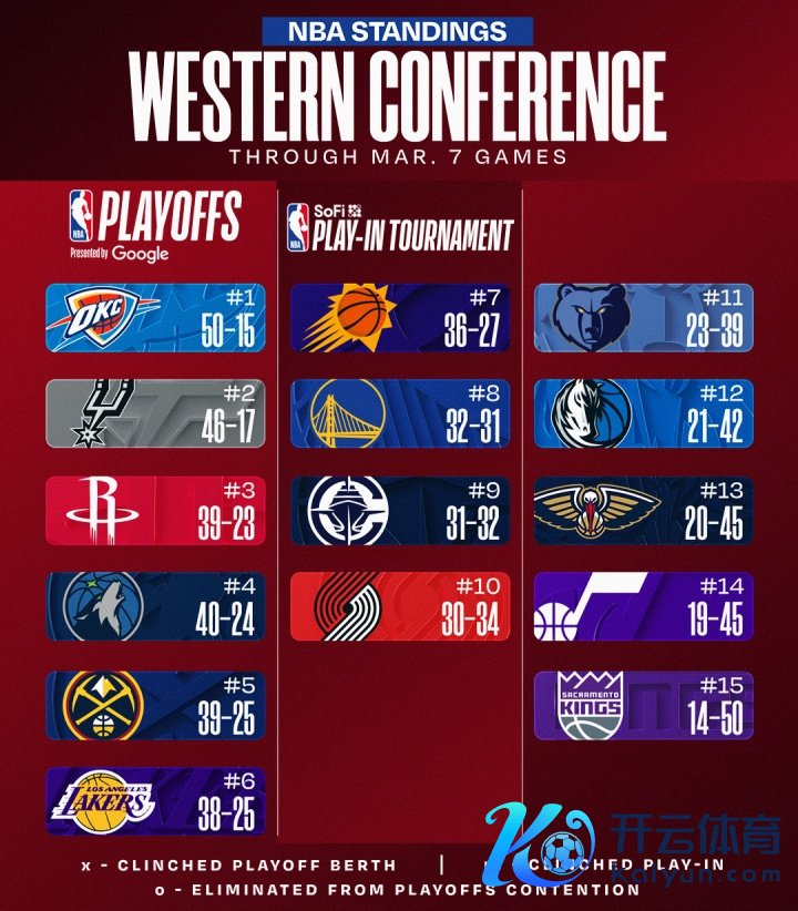 从本日起,老狮将逐日更新排行变化汇总,让吧友们第一本领了解各自主队的季后赛/附加赛远景: