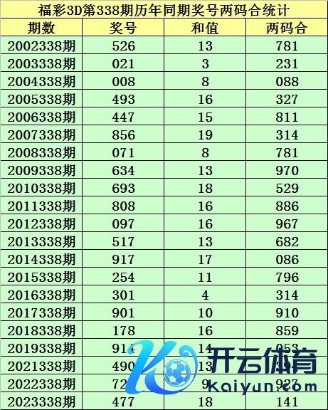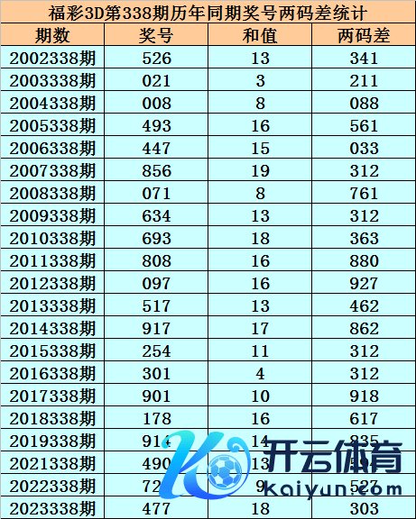 福彩3D第338期,历史上期开出21次奖号,其奖号分散为:526、021、008、493、447、856、071、634、693、808、097、517、917、254、301、901、178、914、490、720、477,奖号两码合差分散开出: