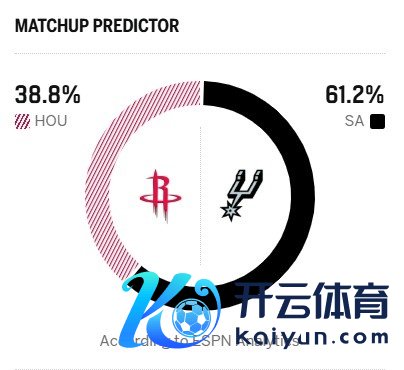 ESPN展望本场比赛胜率:马刺61.2%,火箭38.8%。